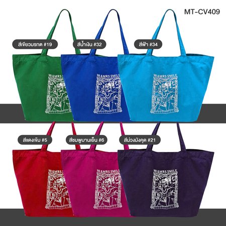 กระเป๋าผ้าเเคนวาส สีสันสดใส พร้อมหูสะพายเเล่ง
