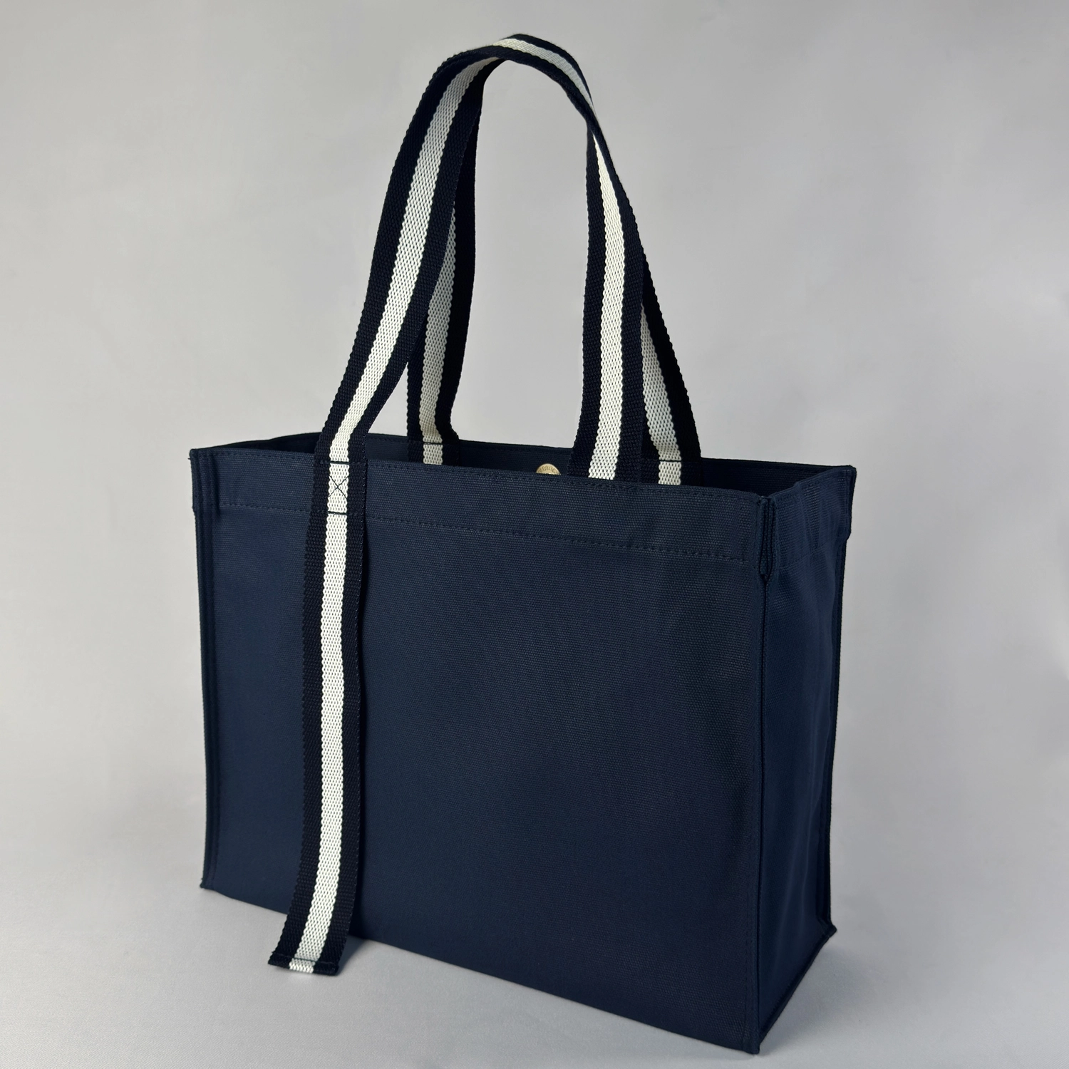 หูกระเป๋า • หูผ้าในตัว ขนาดกว้าง 1.5 นิ้ว สีกรมท่า-ขาว