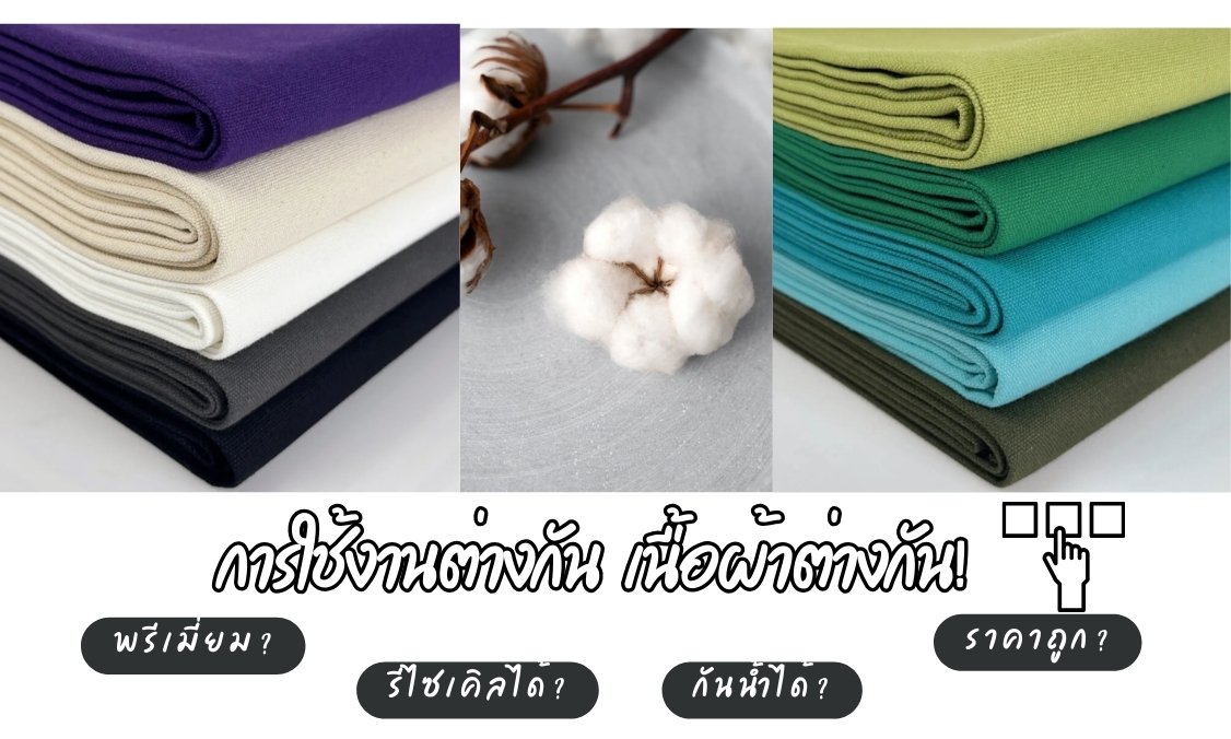 ตัวอย่างวัสดุที่ใช้บ่อยในการผลิตกระเป๋าผ้า: